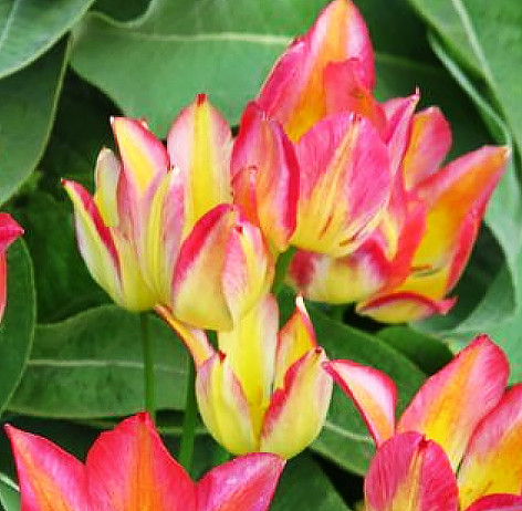 Színváltó tulipán, mely bimbósan halványsárga-fehér-zöld, majd kinyílva málnaszín-sárga , a virág érésével pedig pink-lazac-narancs színű lesz.