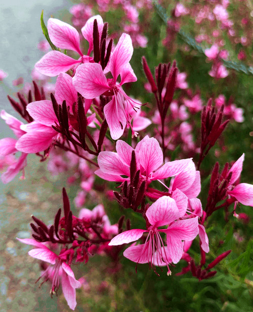 Légies megjelenésű, hosszú szárain nyílnak pink színű, cirmos, pillangószerű, kecses virágai.