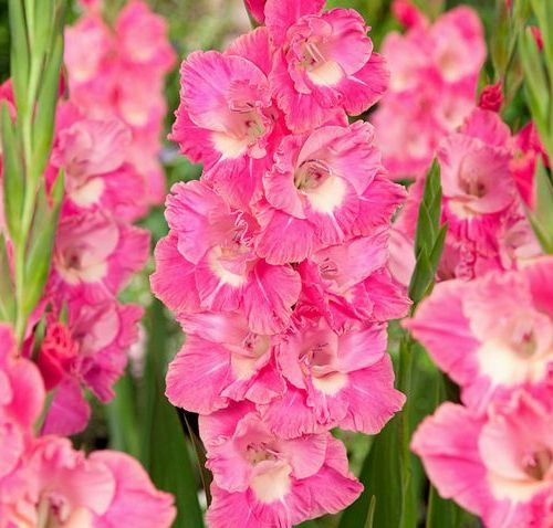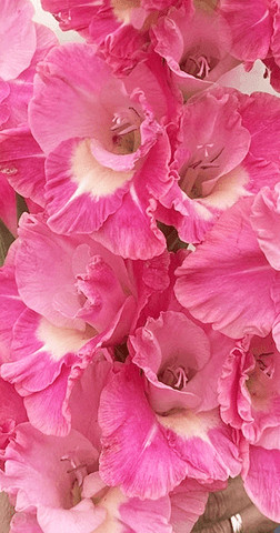 Az egyik legszebb pink kardvirág, az élénkebb pink, pasztell rózsaszín, babarózsa szín finom átmenete, fehér torokkal.